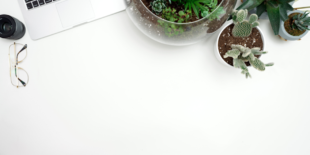 Le piante grasse stanno benissimo accanto al PC, nell'angolo studio. Crescono lentamente, ma sopportano il calore emesso dal computer, vivono a lungo e richiedono poche cure: i piccoli cactus spinosi, la Stone rose e tutte quelle che vi piacciono. La soluzione per non conficcarsi nelle dita le piccole spine di cui sono ricoperte alcune piantine grasse ricoperte di spine è metterle sotto vetro! Non in barattolo, come le conserve, ma in contenitori che sono aperti e trasparenti, come quelli nella foto di Scott Webb! Sarà anche più facile spostare le piante per spolverare la scrivania!